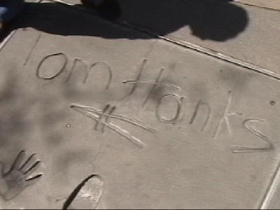トムハンクスの手形に手を当ててみる。他にもアンソニーホプキンス、シュワちゃん、ジャックニコルソン、ドナルドダック(足形)を発見。
