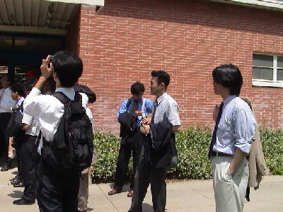 一色教授に導かれてキャンパス内を見学。容赦のない日差しにすでにバテ気味。