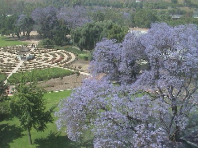 4階から見下ろすと眼下にアフリカの桜、ジャカランダ(JACARANDA)と、大学のバラ園が見える。
