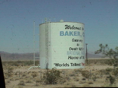 | 約2時間半のドライブの後、フリーウェイの終点、デスバレーへの入口とも言うべき町、Bakerに到着。ここで給油することをお勧めしたい。 |
