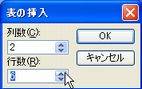 画面上部のメニューバーから、[挿入]-[表]を選択(左下図)。表の挿入画面が表示されたら、列数と行数を指定する(右下図)。