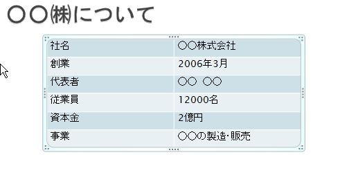 ここでは、次のようなスライドを作成するために必要な作業を説明する。