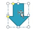 四角形の描画と同様に下矢印の図形を描画することができる。整形も四角形と同様であるが、黄色◆は矢印のスタイルを整えるために使う。