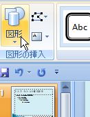 テキストエリアの枠をダブルクリックし、メニューバーに[描画ツール]-[書式]を表示させも一番左の[図形]を選択(左下図)。描きたい図形を選択。