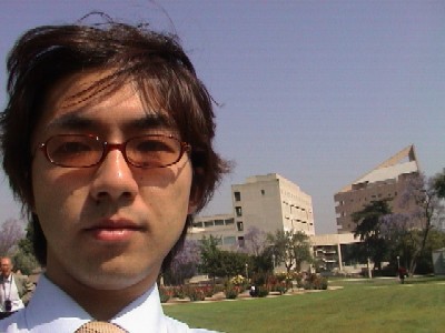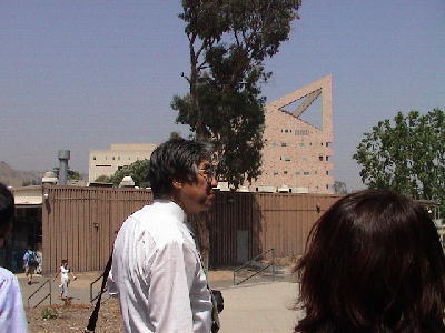 一色教授に導かれてキャンパス内を見学。容赦のない日差しにすでにバテ気味。