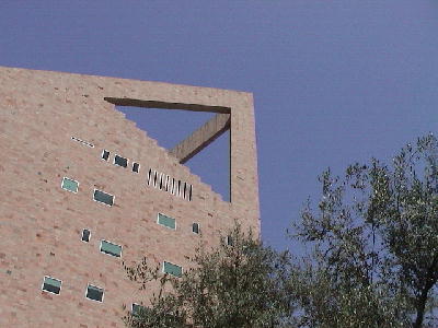 | ラボの入口。先ほど4階から見下ろしたジャカランダが見える。