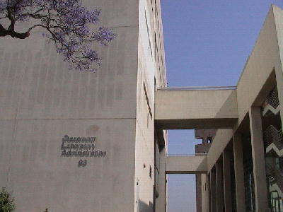 4階から見下ろすと眼下にアフリカの桜、ジャカランダ(JACARANDA)と、大学のバラ園が見える。