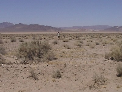 | Bakerから信号機のまったくない一般道を時速70マイルで走ること30分。車を止め外に出た。強い日差しと時折吹く温風で、急速に皮膚から水分が奪われる。 |
