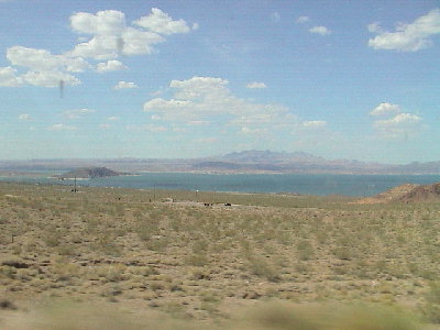 | ダムを過ぎると、ダムの水源(?)LAKE MEADの美しい景色がひらける。
