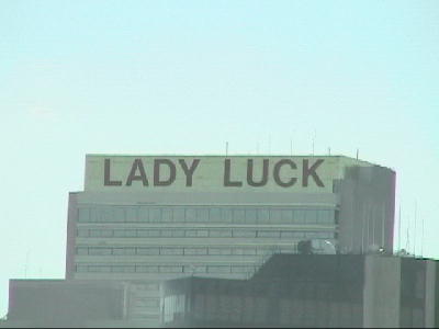 | フリーウェイのインター近くでは、それらしい看板も目に付く。私たちにLadyLuckは微笑むだろうか? |