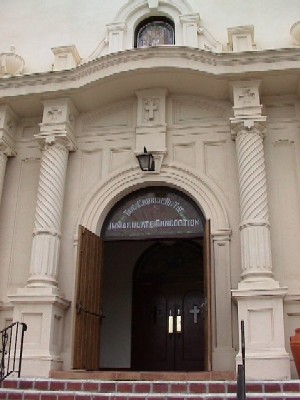 | OldTownの敷地の外にもレストランや雑貨店、教会(写真)などがある。朝食を抜いた私は、ご機嫌なレストランを探して徘徊。途中、小型トラックに乗ったにーちゃんに「この辺の人間か?この辺詳しい?」と聞かれる。んなわけない。