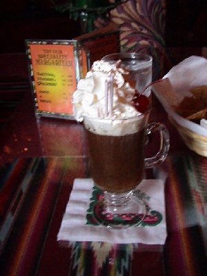 エンチャラーダのコンボとメキシカンコーヒーを注文。甘いクリームどっさり。しかも実はこれ、お酒。学習した。