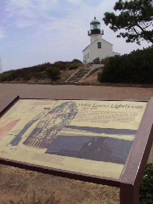 | LightHouse。青い空に白壁が映える。この灯台は1854年に西海岸で最初に建てられた8つの灯台の一つで、1891年まで使われていたとのこと。中にも入ることができ、狭い螺旋階段を上って、灯台のLightの直下まで行くことができる。小さな子供がそこにあるはしごに登り、子供をしっかりと支える父親に対して「kind of scared」と言っていた姿が印象に残る。